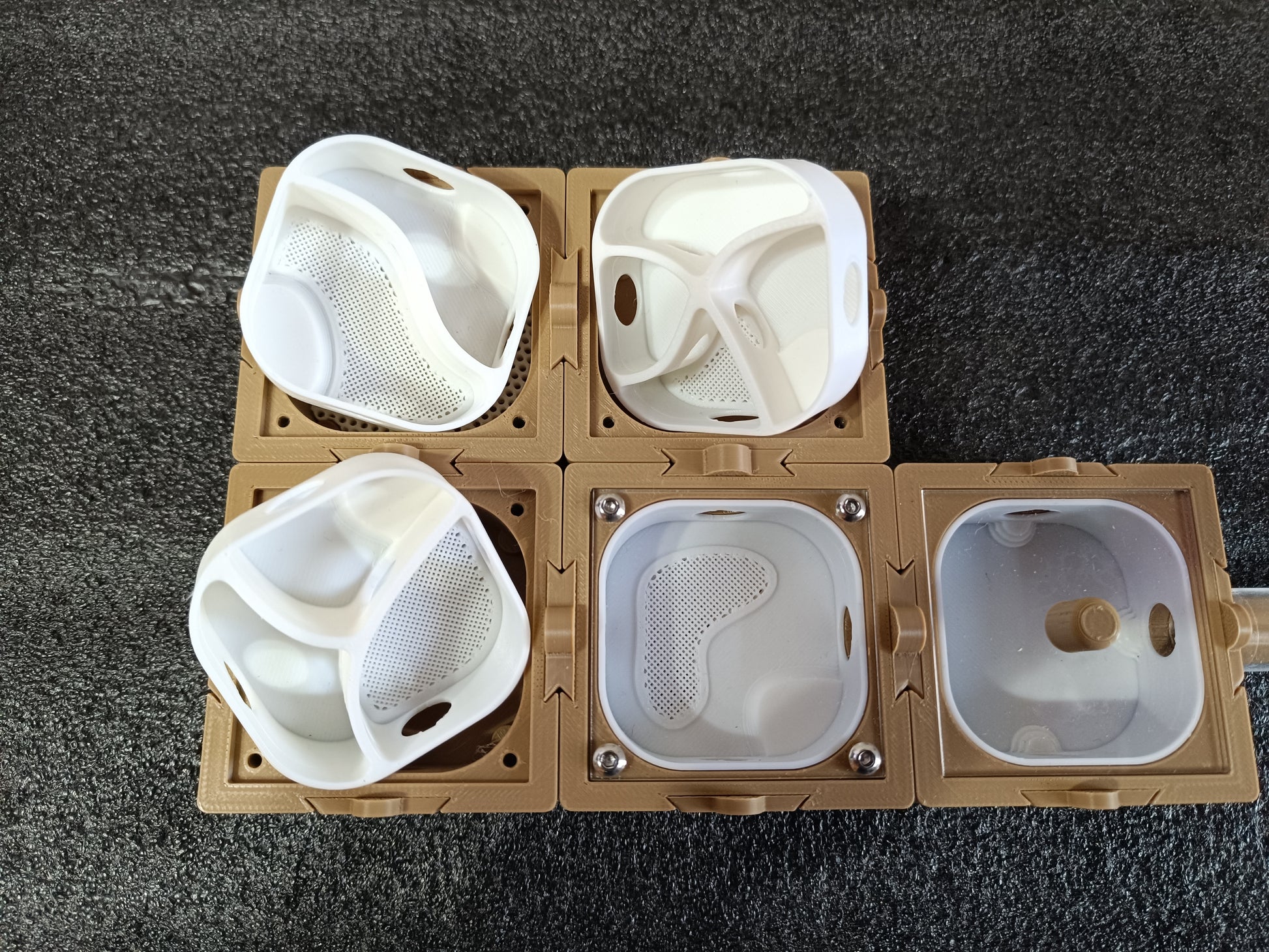 Système d'humidification du nid par le dessous, remplissage par débordement sur les côtés du nid.